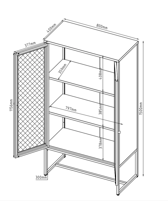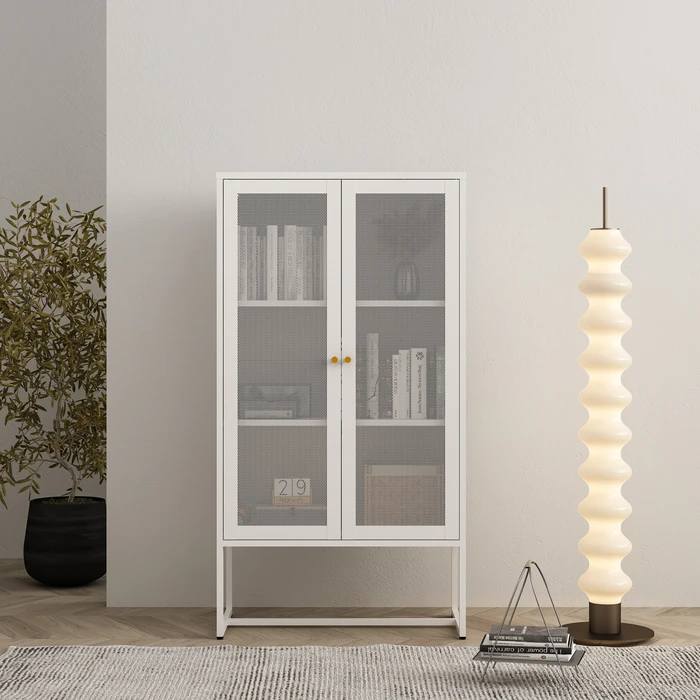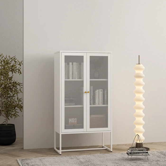 ויטרינה מתכת לבנה עם דלתות רשת – STEELIX