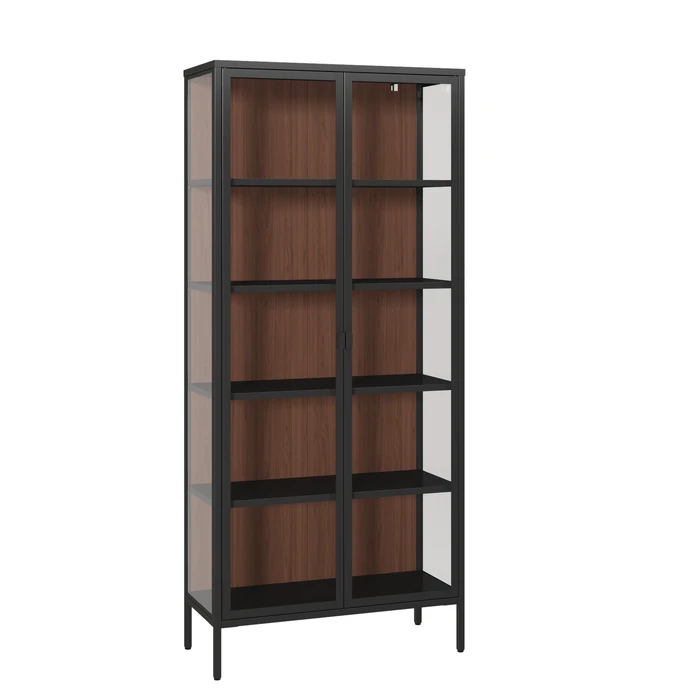 ויטרינה מתכת עם דלתות זכוכית וגב בגוון עץ – STEELIX