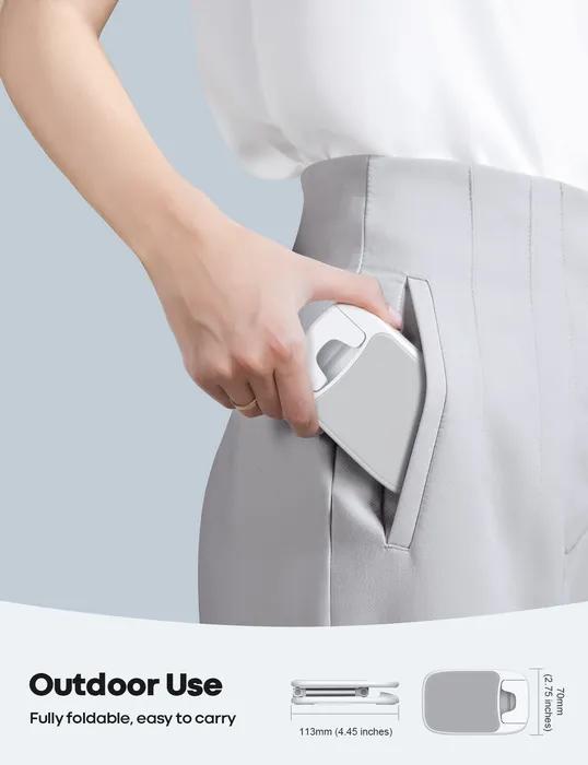 העיצוב המתקפל מאפשר נשיאה קלה בכיס או בתיק היד, מה שהופך אותו לאביזר הכרחי לנסיעות רגילות ועסקים.
